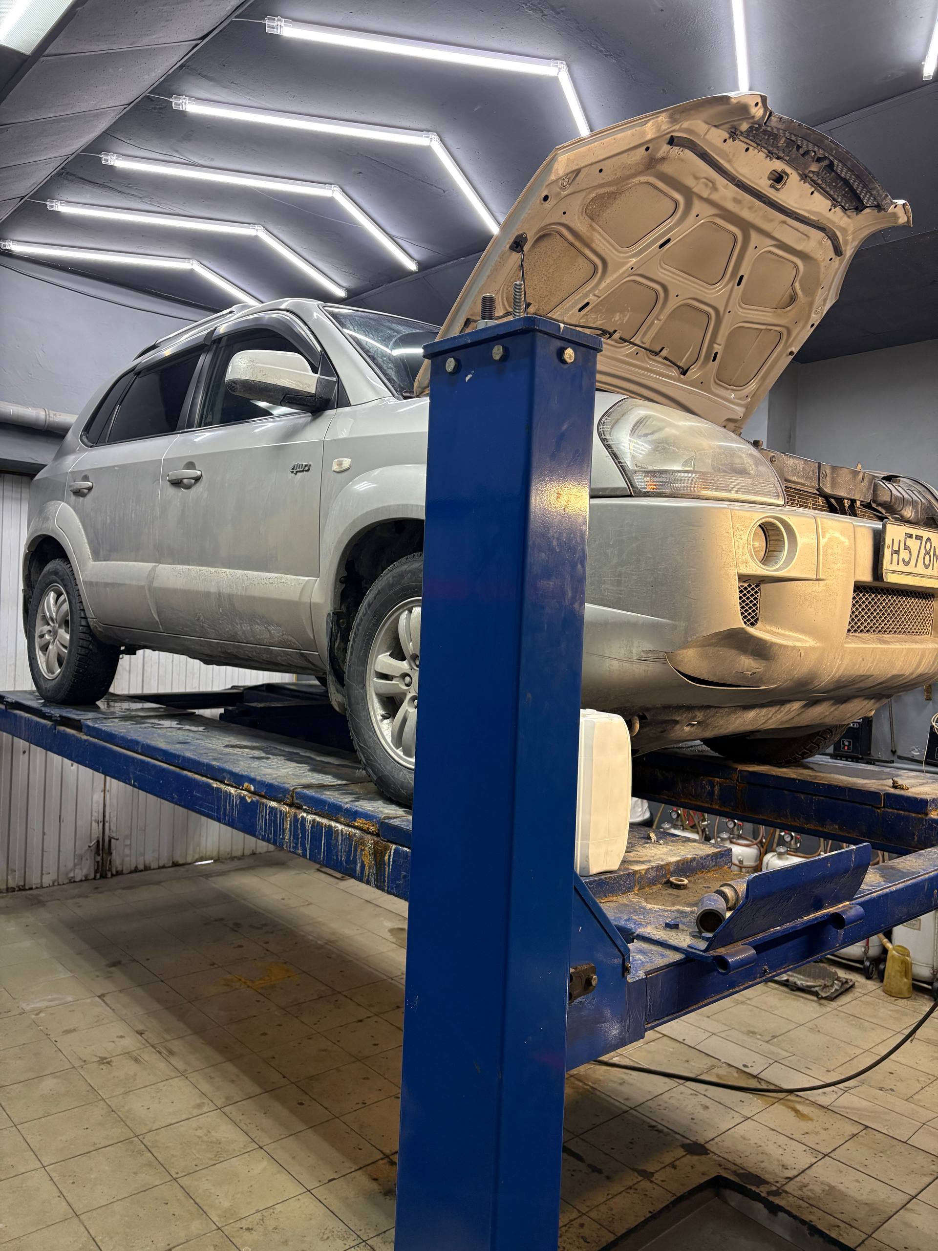 Мы произвели ремонт Hyundai Tucson, 2007 год, цвет серый,путем замены основного радиатора качественно и точно в срок. клиент доволен нашим сервисом.